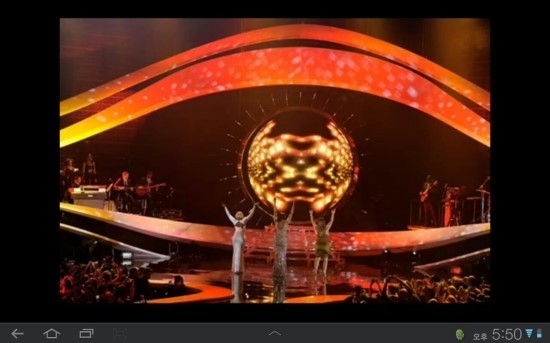 Grammy Awards 피날레에서 동료 가수들과 함께 전시안(루시퍼) 앞에서 경배와 찬양을 올리고 있다.
